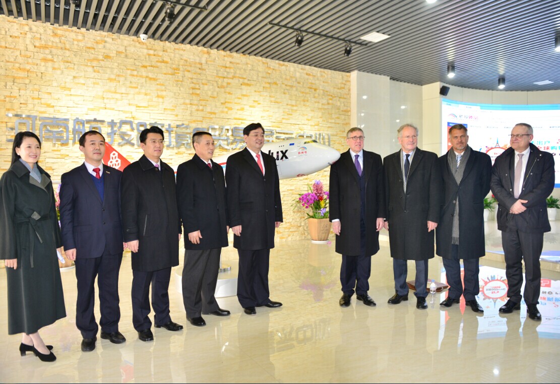 On 23th January, the launching ceremony for Cross-Border E-Trade and LuxFresh Project of HNCA was held in Zhengzhou Airport Economy Zone. The Vice-governor of Henan province Zhao Jiancai and the Minister of Sustainable Development and Infrastructure of Luxembourg François Bausch attended the ceremony and made speech. The launching of this Project symbolizes that, the cooperation of HNCA and Cargolux has extended to international trade from air transportation, achieved a breakthrough in cross-industry; and a leading cross-border e-trade platform ahs landed in Zhengzhou Airport Economy Zone. It is a milestone in the further development of our Dual-Hub Strategy and also marks the cooperation between us has expanded to the world from Air Silk Road.