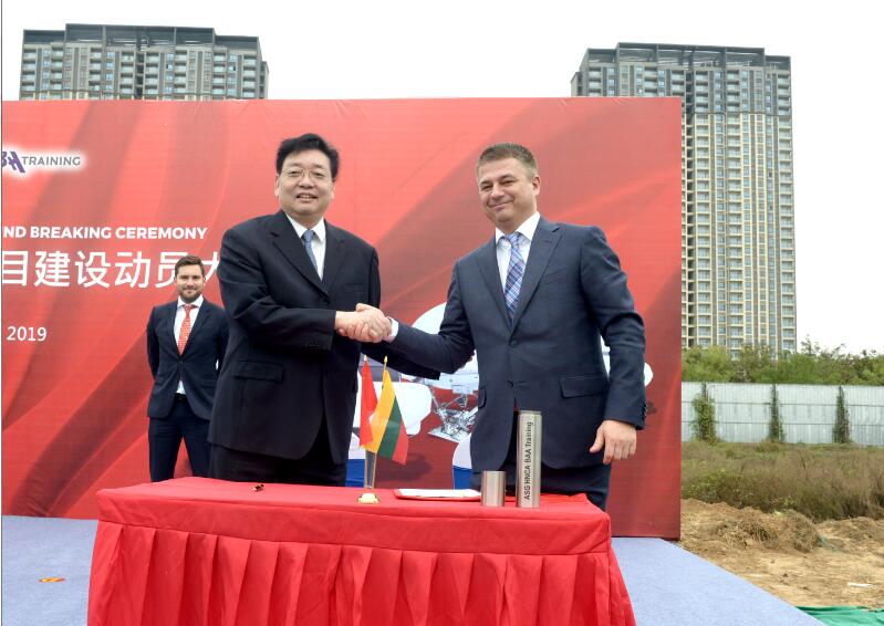 On the morning of 25th, October, the first aviation training project in central China ——BAA (China) started to construct . The project fills the gap of Henan aviation training industry and further improves the Henan civil aviation industry chain. Zhang Mingchao, Chairman of HNCA, Liu Jianbao, General Manager of HNCA, Gediminas, Chairman of Lithuania Avia Solutions Group, Vygaudas, Director of Lithuania Avia Solutions Group, Egle, General Manager of Lithuania BAA Training, Tomas, General Manager of AviaAM Financial Leasing (China) Co., Ltd., and Aurimas, General Manager of BAA (China) Aviation Training, laid the foundation for the project together.