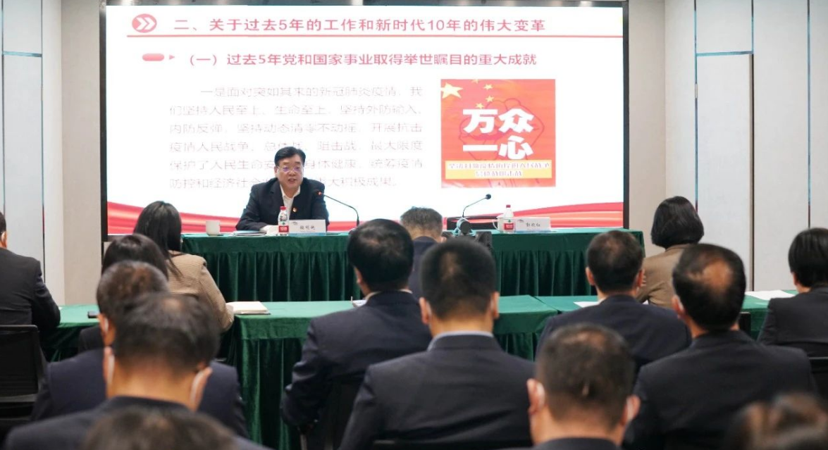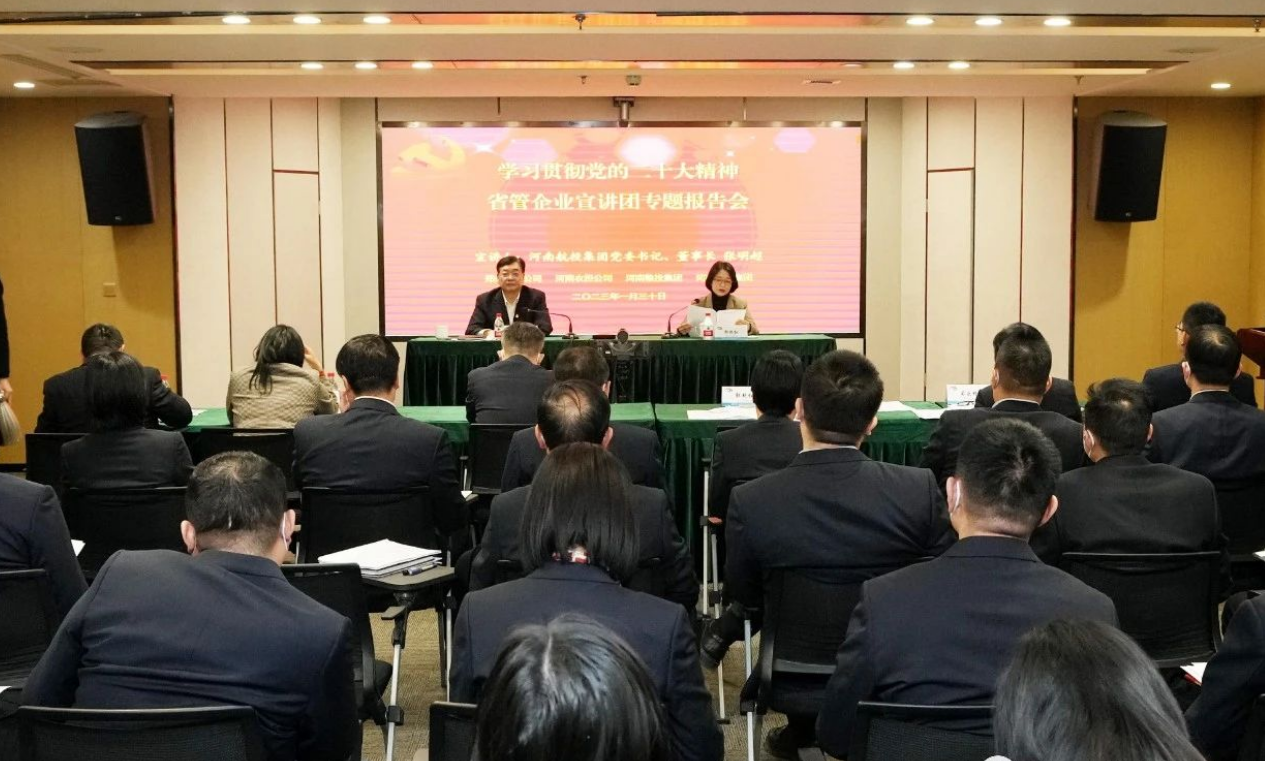 1月30日,按照省委和省政府国资委党委统一安排部署,省管企业宣讲团成员,河南航投集团党委书记、董事长张明超在开云网页版登录入口服务中心宣讲党的二十大精神。专题报告会以线上线下相结合的方式召开,郑州粮批、河南农担、河南粮投党员干部及员工代表同时参会。河南航投集团党委副书记、工会主席郭艳红主持会议,领导班子其他成员、中层管理人员及部分党员代表现场参会。