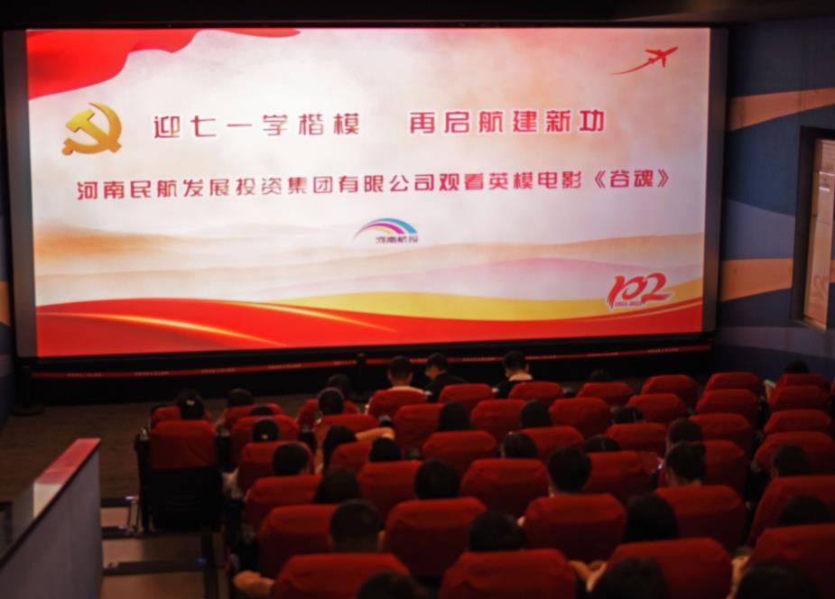 6月29日下午,河南航投举办“迎七一学楷模 再启航建新功”主题观影活动,集团120名员工在河南省人民会堂集体观看了红色教育电影《谷魂》。