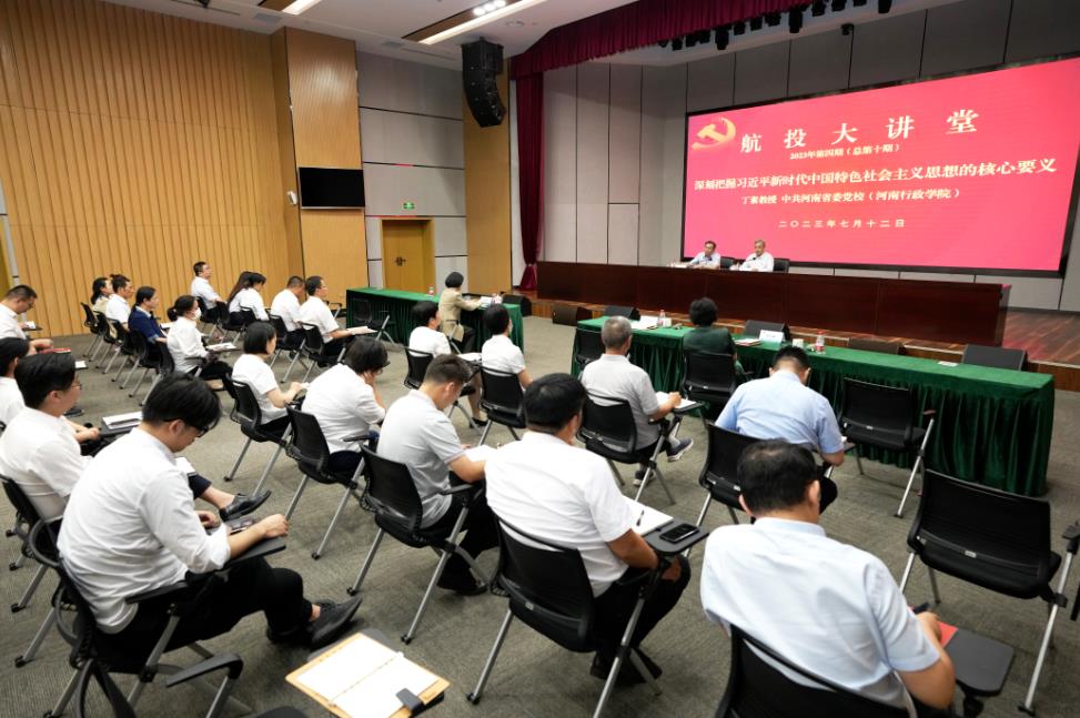 为深入推进学习贯彻习近平新时代中国特色社会主义思想主题教育,7月12日下午,河南航投集团党委召开理论学习中心组集体学习(扩大)报告会,邀请中共河南省委党校(河南行政学院)教授丁素作报告。