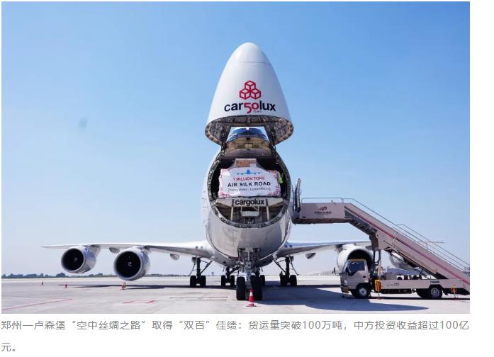 2014年1月,河南航投收购卢森堡货航35%股权签约仪式在郑州举行。同年6月,首条郑州—卢森堡国际货运航线开通,同年11月,卢森堡货航郑州航线货运量就突破1万吨;2015年11月,货运量累计突破5万吨,国际货运量、国际货运航线数、航班数量、国际通航点等主要指标跃居郑州机场首位;2016年6月,累计货运量突破10万吨;2019年5月,50万吨;2021年8月,80万吨,2023年6月突破100万吨。