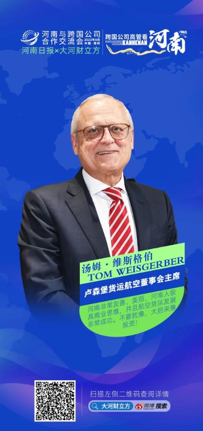 9月5日,卢森堡货航董事会主席汤姆·维斯格伯前来郑州参加河南和跨国公司交流合作会,同行的还有卢森堡货航总裁兼首席执行官理查德·福森,两位负责人联袂远道而来,足见他们对河南的重视。