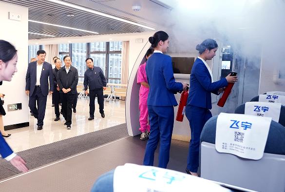 随后,刘奇葆一行还实地了解了飞行训练中心和乘务训练中心。在全动模拟机舱内,刘奇葆仔细查看了内部构造和仪表功能等,并与现场的教员一起进行了试飞。