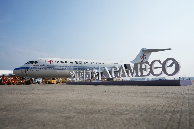 10月30日,中国商飞在广州向河南航投集团交付ARJ21客改货飞机。作为启动用户,这也是河南航投收到的首架ARJ21客改货飞机。中国商飞党委书记、董事长贺东风向集团党委书记、董事长张明超移交交付纪念钥匙。中国商飞党委副书记、董事谭万庚,中原龙浩航空董事长郭建业等致辞,中国商飞党委常委、副总经理、总会计师吴永良向河南航投租赁颁发飞机销售证,民航中南局副局长陈维向中原龙浩航空颁发单机适航证、国籍登记证、无线电台证。中国商飞党委常委、副总经理张玉金主持仪式。