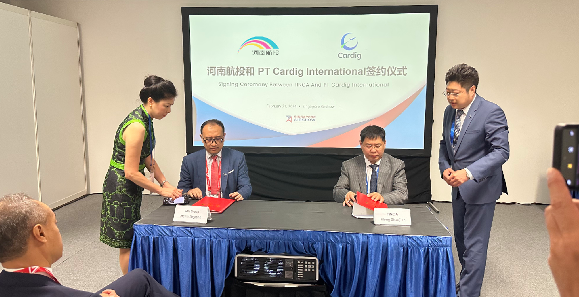 2月21日,河南航投与印度尼西亚卡迪格航空集团(Cardig)在新加坡航展期间签署谅解备忘录,在航空培训、航空运输及航空基础设施建设等领域开展全方位战略合作。随后,双方子公司广东优翼航空技术有限公司(以下简称优翼仿真)与雅加达航空培训中心(以下简称JATC)签订合作协议。