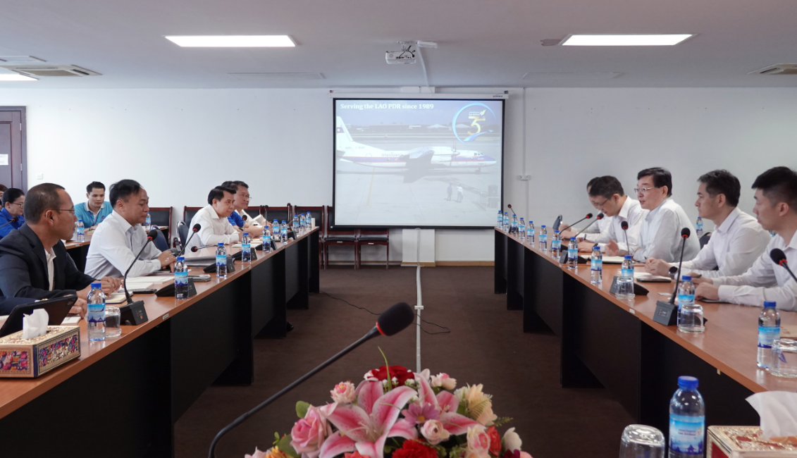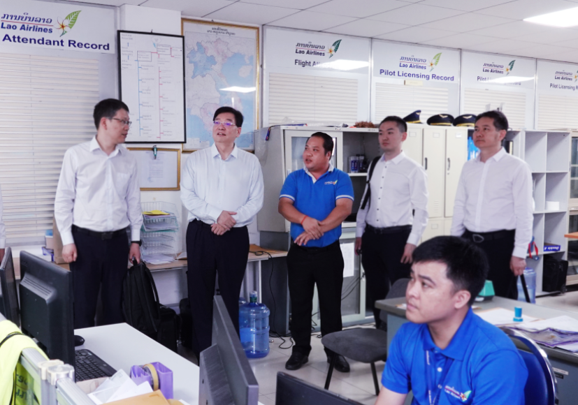 张明超在万象访问了老挝航空公司,与其总经理坎拉·蓬马万就航空客货运、航空培训、飞机租赁、航空救援等业务进行了广泛交流。同时,实地调研了万象机场,考察了地面服务保障措施、航空物流货站、飞机维修等业务,与管理层交流合作意向,深入探讨中豫航空与老挝民航产业的合作潜力,谋划中原龙浩航空开通万象—郑州货运航线。