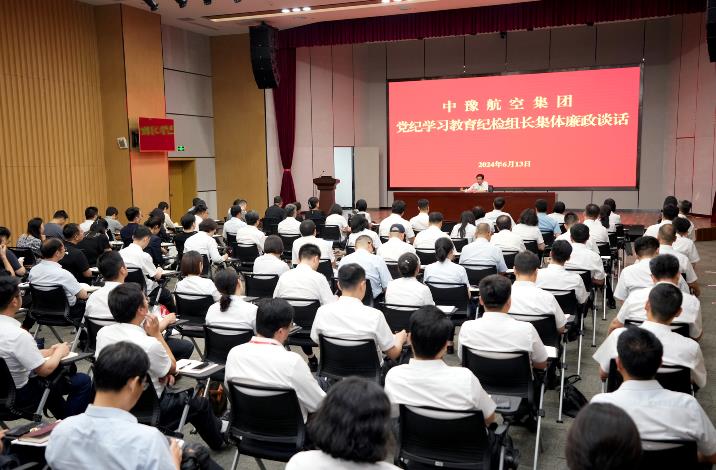 6月13日,按照党纪学习教育工作安排,中豫航空集团召开纪检监察干部廉政集体谈话会,要求纪检监察干部认真学习贯彻习近平总书记关于加强党的纪律建设重要论述精神,进一步提高党性修养、纪律意识和履职能力,既要学纪知纪明纪守纪,也要规范执纪用纪。驻集团纪检监察组组长张啸讲话,集团纪检监察干部,各单位纪委书记、专兼职纪检监察干部,各支部纪检委员参会。