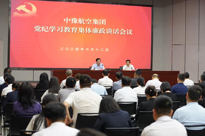 6月12日,中豫航空集团召开党纪学习教育集体廉政谈话会议,集团党委书记、董事长张明超对所属党组织书记、组织人事部门负责人和年轻干部代表开展集体廉政谈话。驻集团纪检监察组组长张啸主持会议。