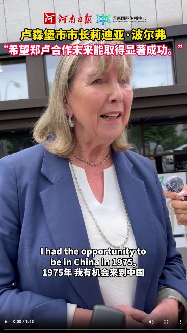 6月19日,“空中丝绸之路”河南文化旅游周于卢森堡中国文化中心举办。其间,卢森堡市长莉迪亚·波尔弗接受了河南国际传播中心记者专访,她表示中国是卢森堡值得信赖的伙伴,对双方的合作感到高兴,并期待卢森堡与郑州未来能取得更多显著合作成果。