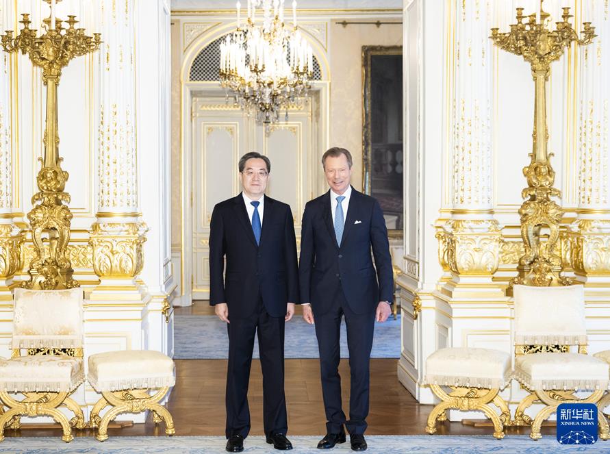 6月20日至21日,中共中央政治局常委、国务院副总理丁薛祥访问卢森堡,分别会见卢森堡大公亨利、国民议会议长维斯勒、首相弗里登、副首相贝泰尔,出席第二届郑州-卢森堡“空中丝绸之路”国际合作论坛并致辞。这是6月20日,丁薛祥会见卢森堡大公亨利。新华社记者 黄敬文 摄