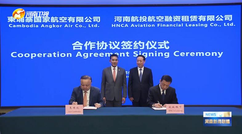11月2日上午,河南航投航空融资租赁有限公司(以下简称航投租赁)与柬埔寨国家航空公司签署融资租赁合作协议,开展跨境飞机租赁业务。省委常委、常务副省长孙守刚与柬埔寨民航国务秘书处大臣兼柬埔寨国家航空公司董事会主席毛哈万纳共同见证协议签署。