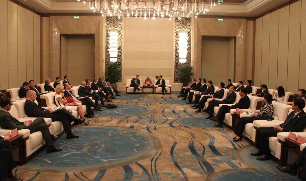6月13日,省委书记、省人大常委会主任谢伏瞻在郑州会见了来豫访问的卢森堡首相格扎维埃•贝泰尔一行,并和省长陈润儿共同见证有关合作协议的签署。河南航投党委书记、董事长张明超一同参加会见,并代表河南航投与卢森堡驻华大使石泰嵋签署《关于在河南开展签证便利业务谅解备忘录》.