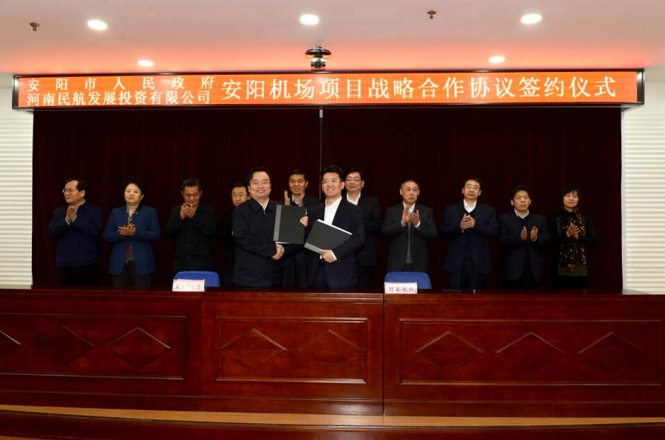 12月29日,河南航投与安阳市政府在安阳签署《战略合作协议》,在新年前就安阳豫东北机场的开工奠基举行简短而隆重的仪式。