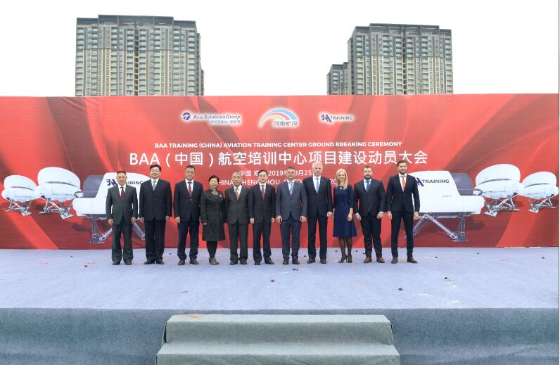 10月25日上午,BAA(中国)航空培训中心项目建设动员大会在航空港区举行。随着第一锹土填入基坑,中原首家航空培训中心正式开工建设。该项目填补了河南省航空培训产业的空白,进一步完善了河南民航产业链条。省外事办、省财政厅、郑州航空港实验区管委会相关领导,河南航投党委书记、董事长张明超,总经理、党委副书记、副董事长刘建葆;立陶宛阿维亚解决方案集团董事长格迪米纳斯,立陶宛阿维亚解决方案集团董事维加乌达斯,立陶宛BAA Training总经理艾格,阿维亚融资租赁(中国)有限公司总经理托马斯,BAA(中国)航空培训中心总经理奥维马斯共同为项目培土奠基。