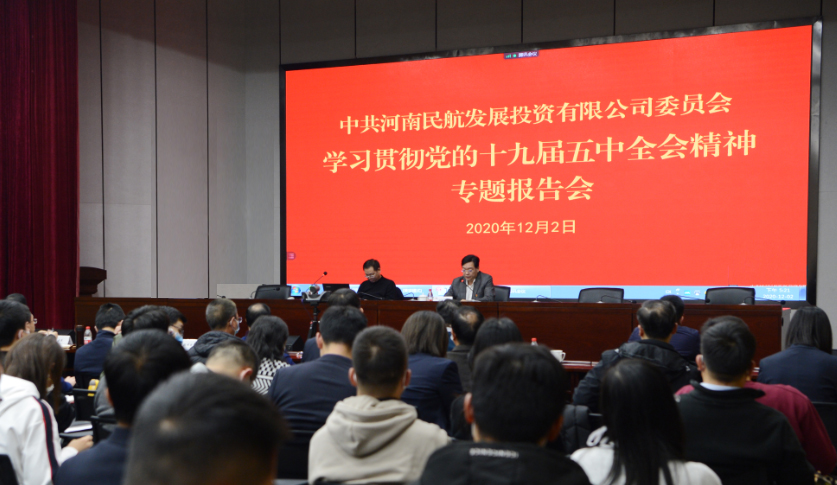 为认真学习贯彻党的十九届五中全会精神,落实党中央、省委省政府关于学习宣传贯彻党的十九届五中全会精神的工作部署,使广大党员切实把握十九届五中全会精神实质,12月2日下午,河南航投党委邀请河南省社会科学院院长谷建全,举办学习贯彻党的十九届五中全会精神专题报告会,会议由公司党委书记、董事长张明超主持。