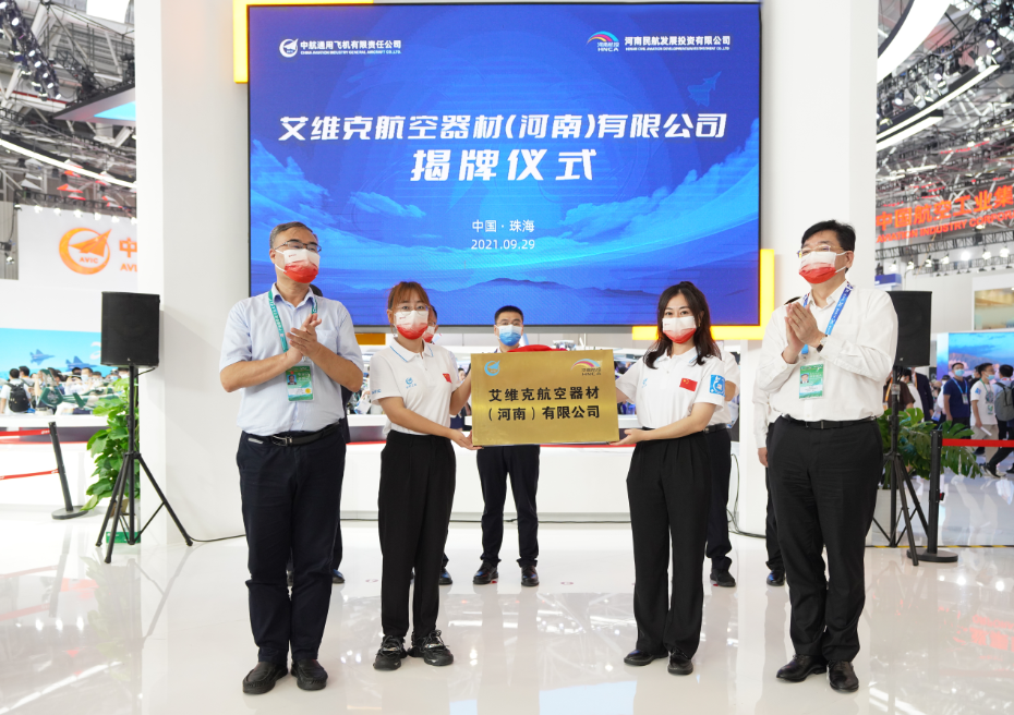 9月29日,艾维克航空器材(河南)有限公司(以下简称艾维克河南公司)揭牌仪式在珠海第十三届中国国际航空航天博览会现场举行。河南民航发展投资有限公司(以下简称河南航投)党委书记、董事长张明超,中航通用飞机有限责任公司(以下简称航空工业通飞)党委书记、董事长白小刚共同揭牌。河南省发展改革委副主任李迎伟出席仪式,河南航投副总经理谢亚伟及相关业务负责人参加。