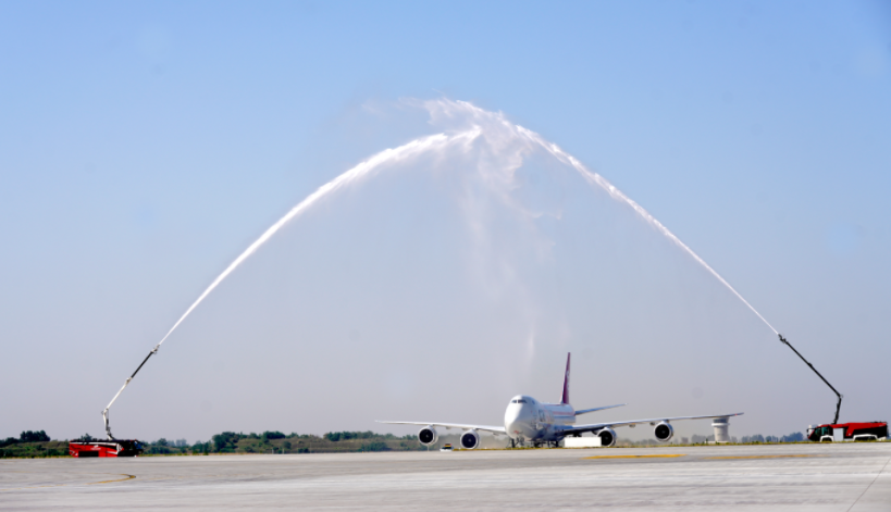 6月14日上午8时30分,一架B747-8F全货机平稳降落在郑州机场,缓缓驶向停机坪,接受民航界最高礼仪“水门”的欢迎,这是卢森堡货航“郑卢空中丝绸之路号”首次亮相!它的到来,刷新了豫卢携手10年成绩单:郑卢“空中丝路”货运量突破100万吨,中方投资收益超过100亿元。河南航投集团交出了深度融入“一带一路”建设的亮丽答卷。