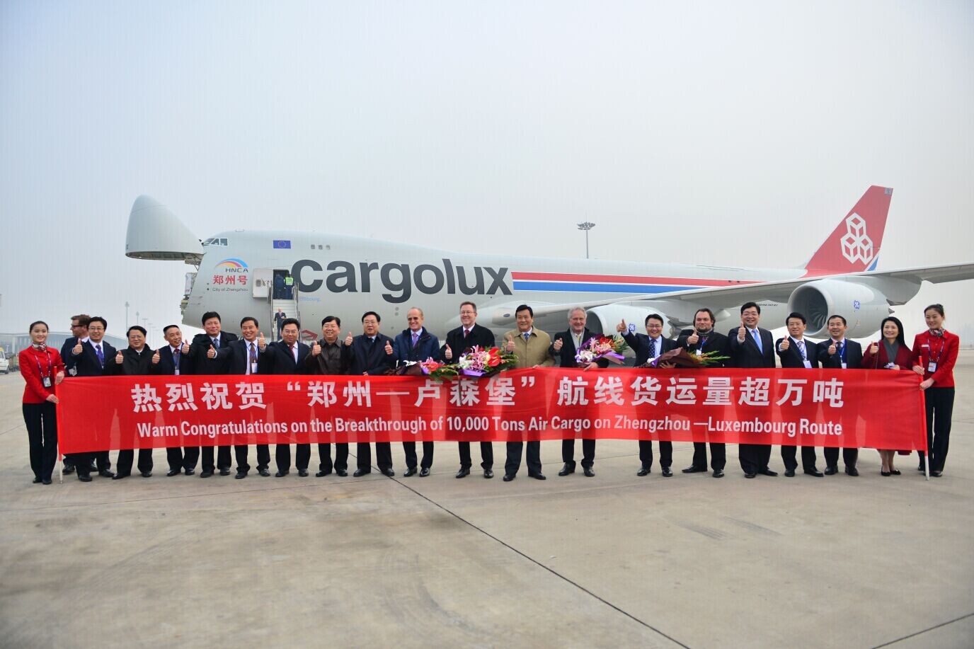 为庆祝洲际新航线的喜人佳绩,郑、卢两地均举行了简单而热烈的纪念活动。当地时间22日下午5点,在芬德尔机场举行了“货运超万吨航班起航仪式”,卢森堡可持续发展与基础产业部部长弗朗索瓦•鲍施、中国驻卢森堡大使曾宪柒以及卢货航董事会主席保罗•海明格、CEO德克•李奇、高级副总裁兼财务总监理查德•福森参加。之后,保罗•海明格、德克•李奇、理查德•福森特意搭乘“郑州号”飞抵郑州,参加中方23日下午举行的“货运超万吨航班接机仪式”。