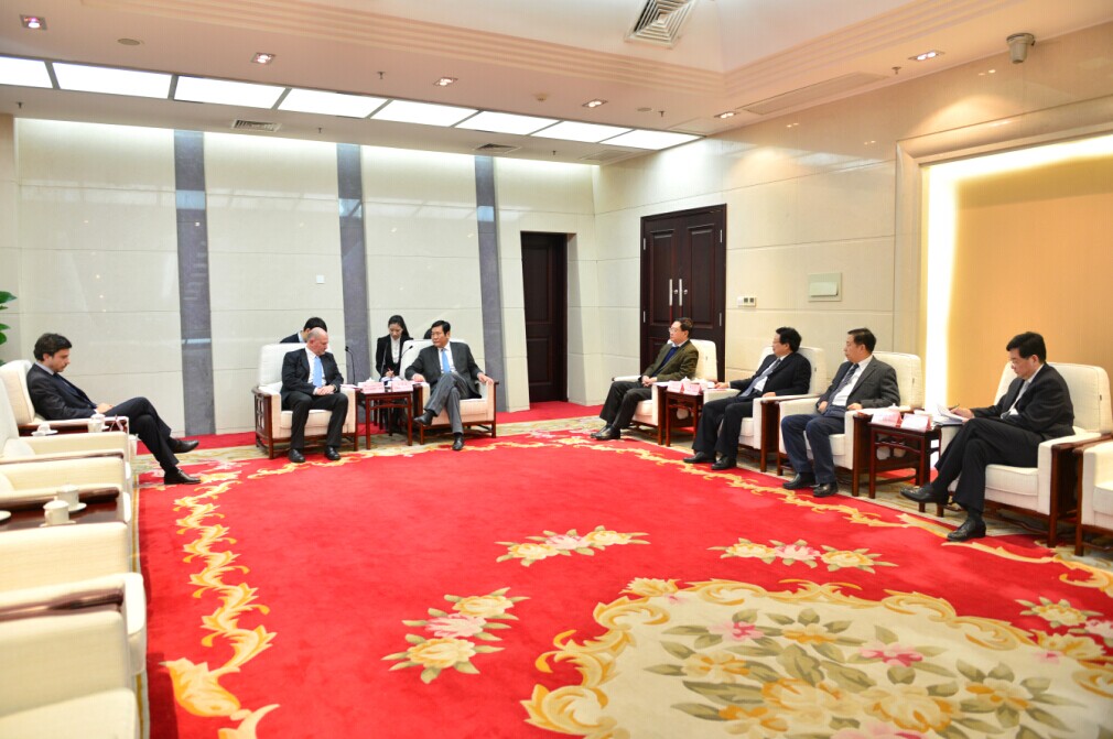 1月16日,河南省副省长赵建才在郑州会见了卢森堡货航意大利公司首席执行官兼责任经理皮尔安德烈•加里一行。河南航投董事长、党委书记张明超一同参加会见。