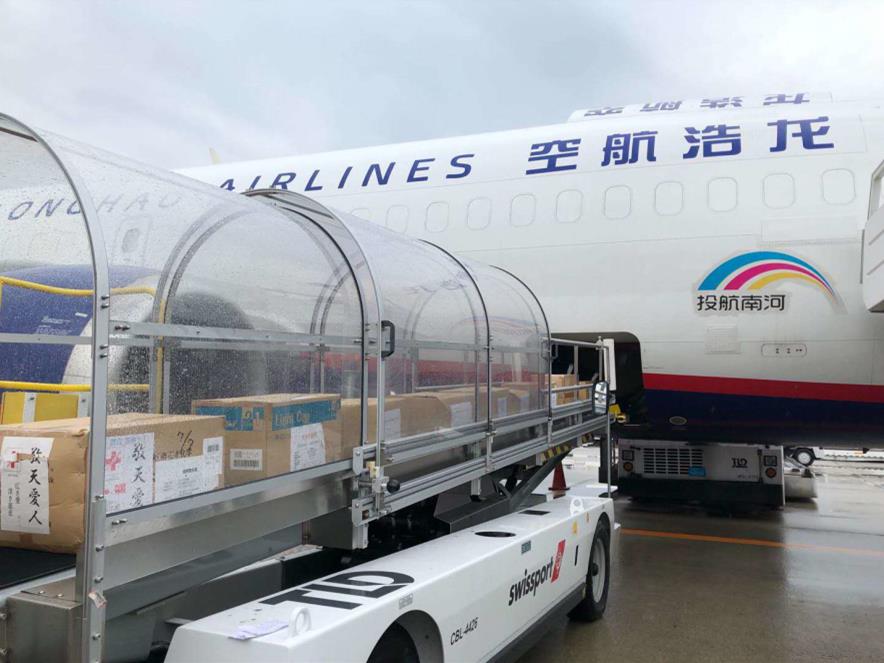 受广州和翊电子商务有限公司委托,2月14日,中原龙浩航空临时执飞郑州=大阪包机。从郑州紧急调机飞往日本大阪,满载医疗救助物资后,顺利返回郑州并完成物资一体化通关。后续由委托方通过卡车转运方式送至湖北疫区。