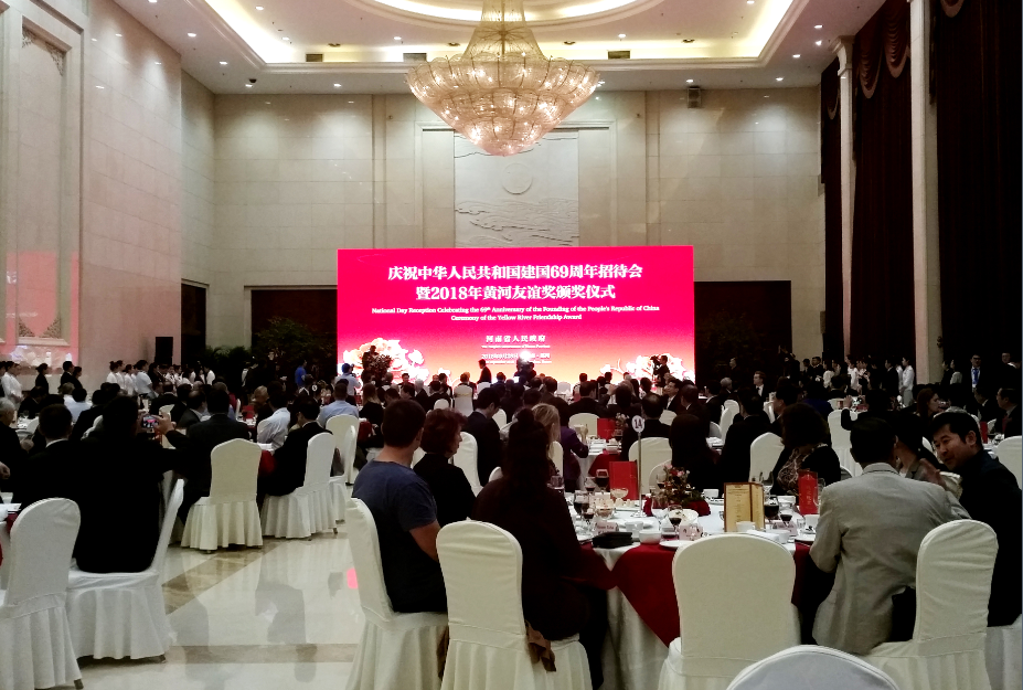 招待会会场首先奏响中华人民共和国国歌。会议宣读了2018年“黄河友谊奖”获奖者名单,其中理查德·福森重视中国市场,在他的大力支持下,卢森堡货航在郑运营后,先后开通三条洲际货运航线,通航点达到14个,形成以郑州为支点,“一点连三洲,一线串欧美”的航空国际货运网络,因而获此殊荣。会上播放了获奖者事迹短片,黄强为获奖者颁奖,并合影留念。